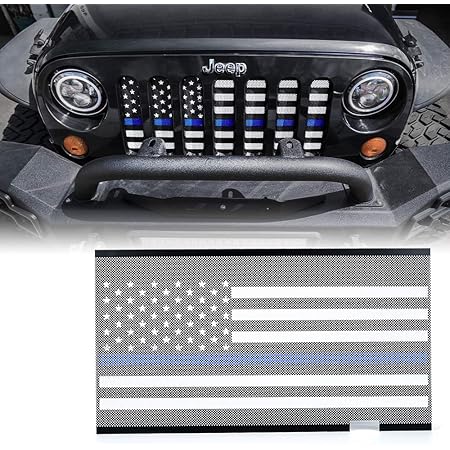 Amazon Com Xprite Aluminum Alloy Front Grill Inserts Mesh With Law Enforcement Blue Stripe Compatible With 2007 2018 Jeep Wrangler Jk Stock Grille Automotive