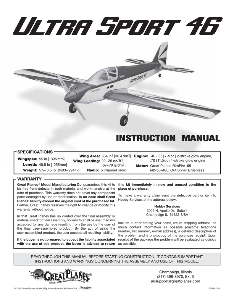 Great Planes Ultra Sport 46 Instruction Manual Manualzz